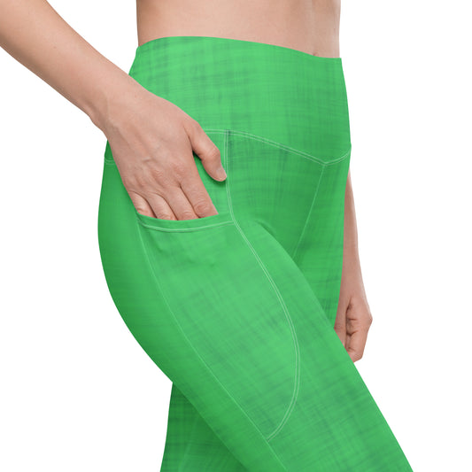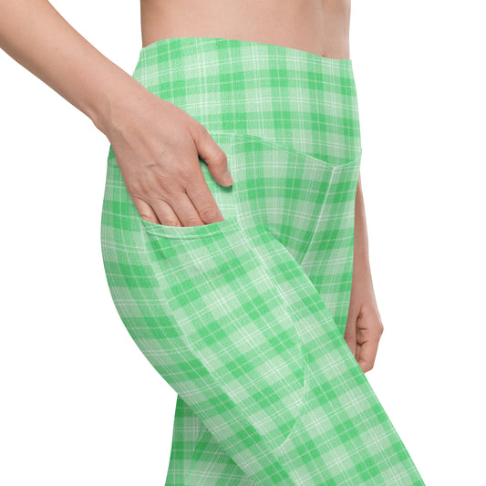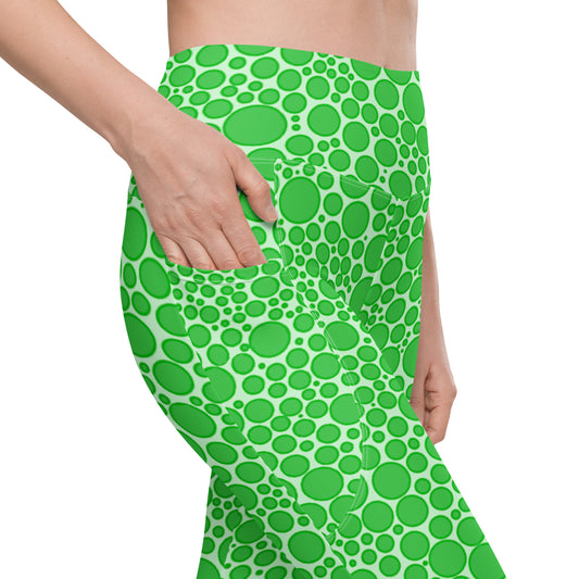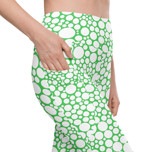 High-Waisted Pocket Leggings - Green Dots on Neon Green