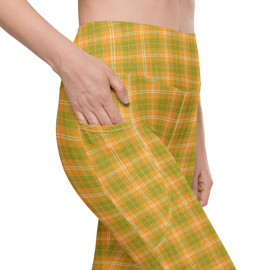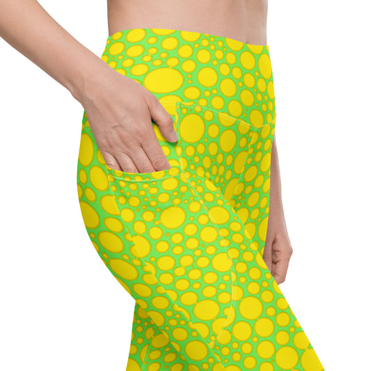 High-Waisted Pocket Leggings - Yellow Dots on Green