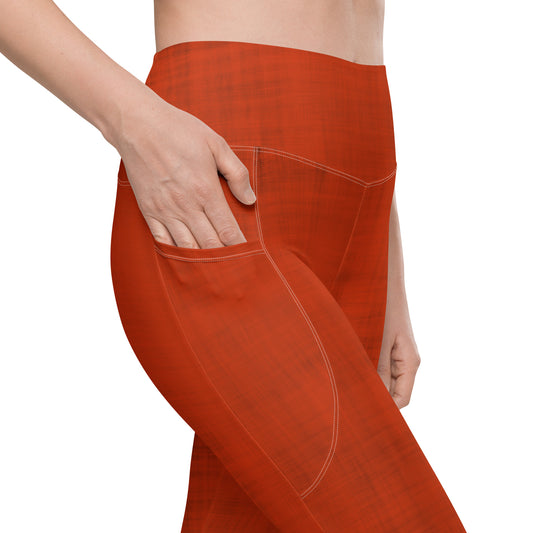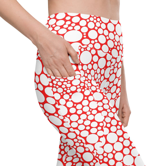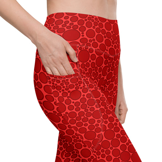 High-Waisted Pocket Leggings - Dark Red Dots on Bright Red