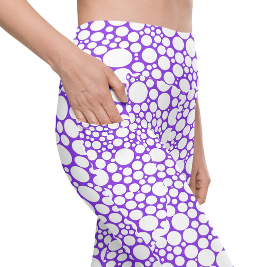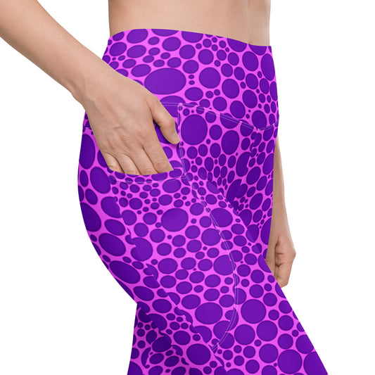 High-Waisted Pocket Leggings - Purple Dots on Pink