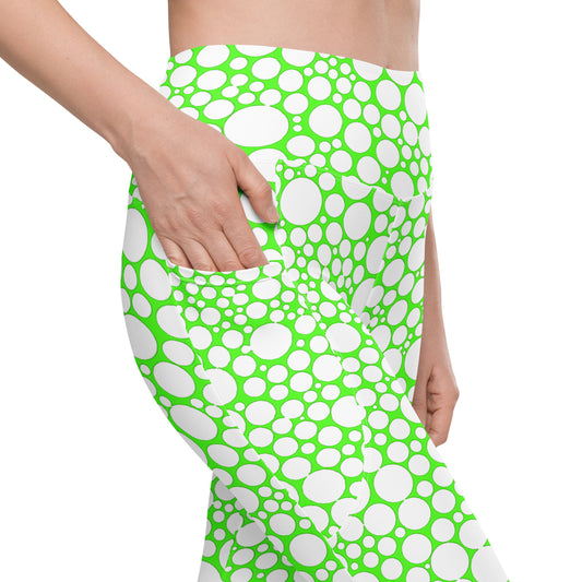 High-Waisted Pocket Leggings - White Dots on Neon Green