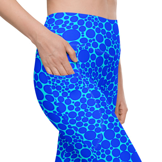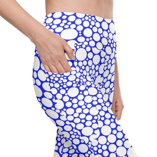 High-Waisted Pocket Leggings - Blue Dots on Electric Blue