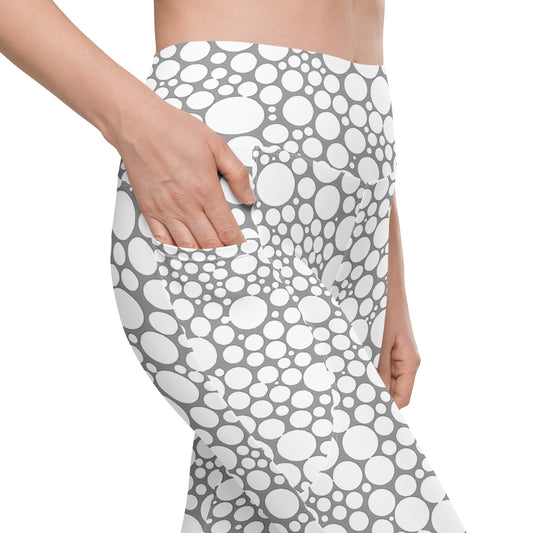 High-Waisted Pocket Leggings - White Dots on Yellow