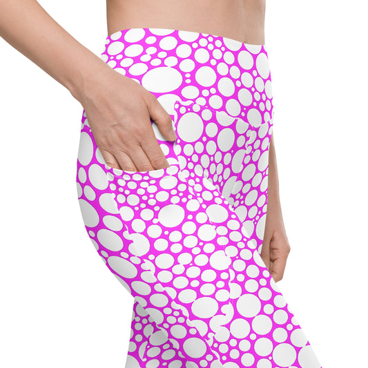 High-Waisted Pocket Leggings - White Dots on Fuchsia