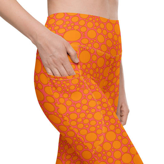 High-Waisted Pocket Leggings - Orange Dots on Pink