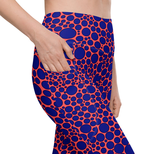 High-Waisted Pocket Leggings - Red Dots on Blue