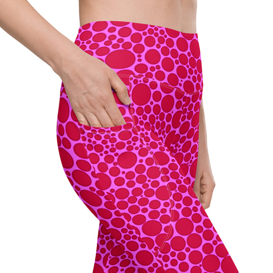 High-Waisted Pocket Leggings - Red Dots on Pink
