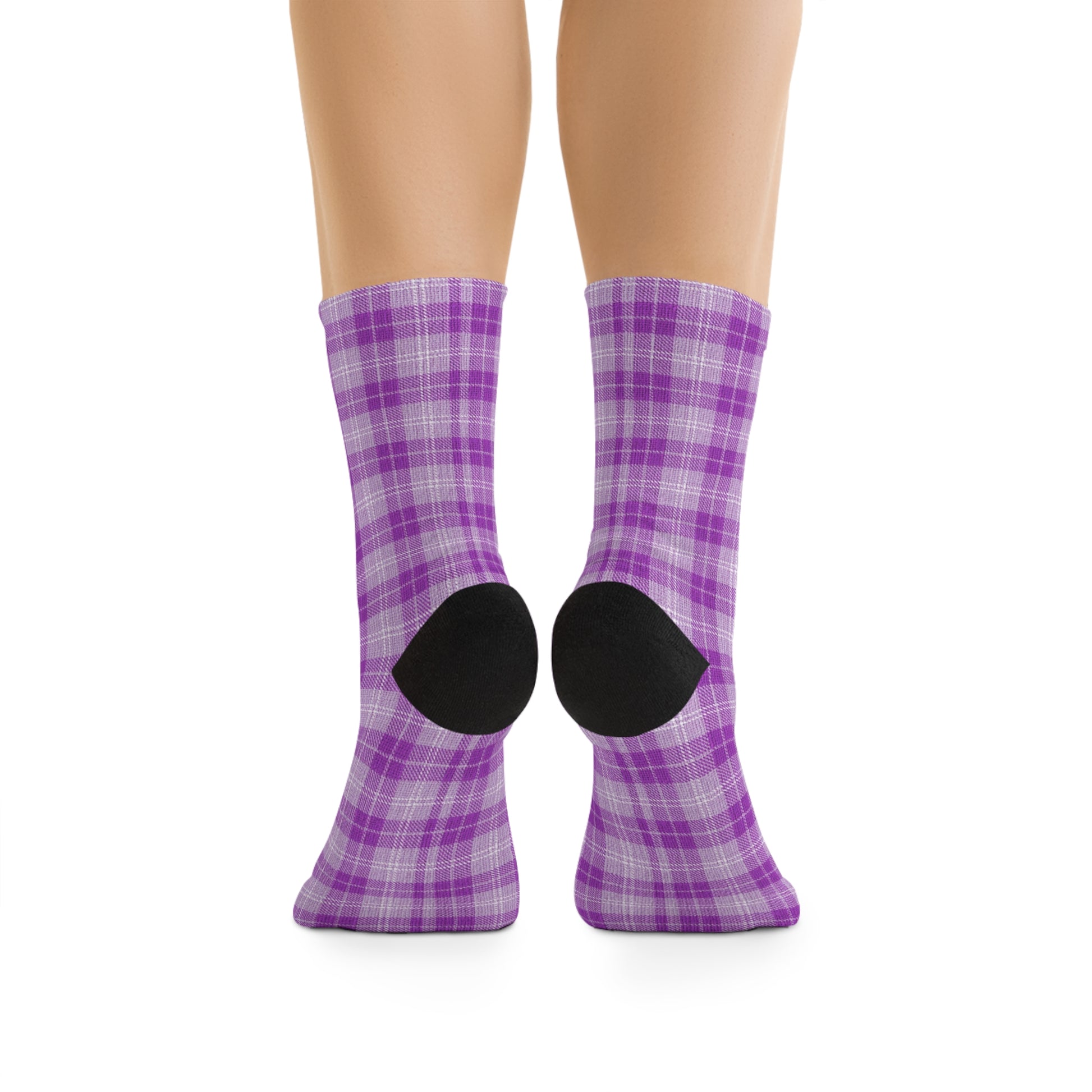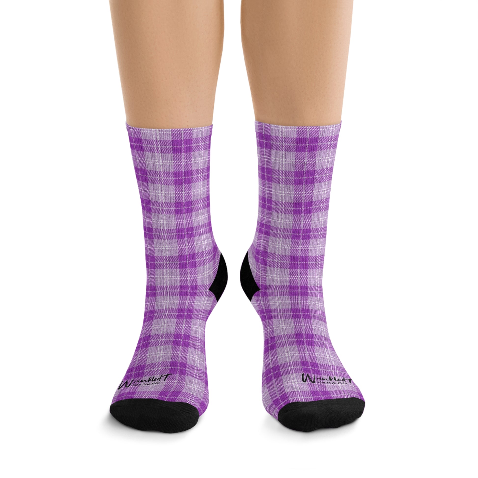 Tribe Socks' special blend of yarns makes 'em super comfy and stretchy, so one size fits most (up to a men's 12). Plus, they're made with recycled materials β»οΈ, so you can feel good about your sock game. π And that vibrant purple pop? It's not going anywhere. Durable AF. πͺ